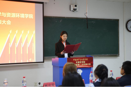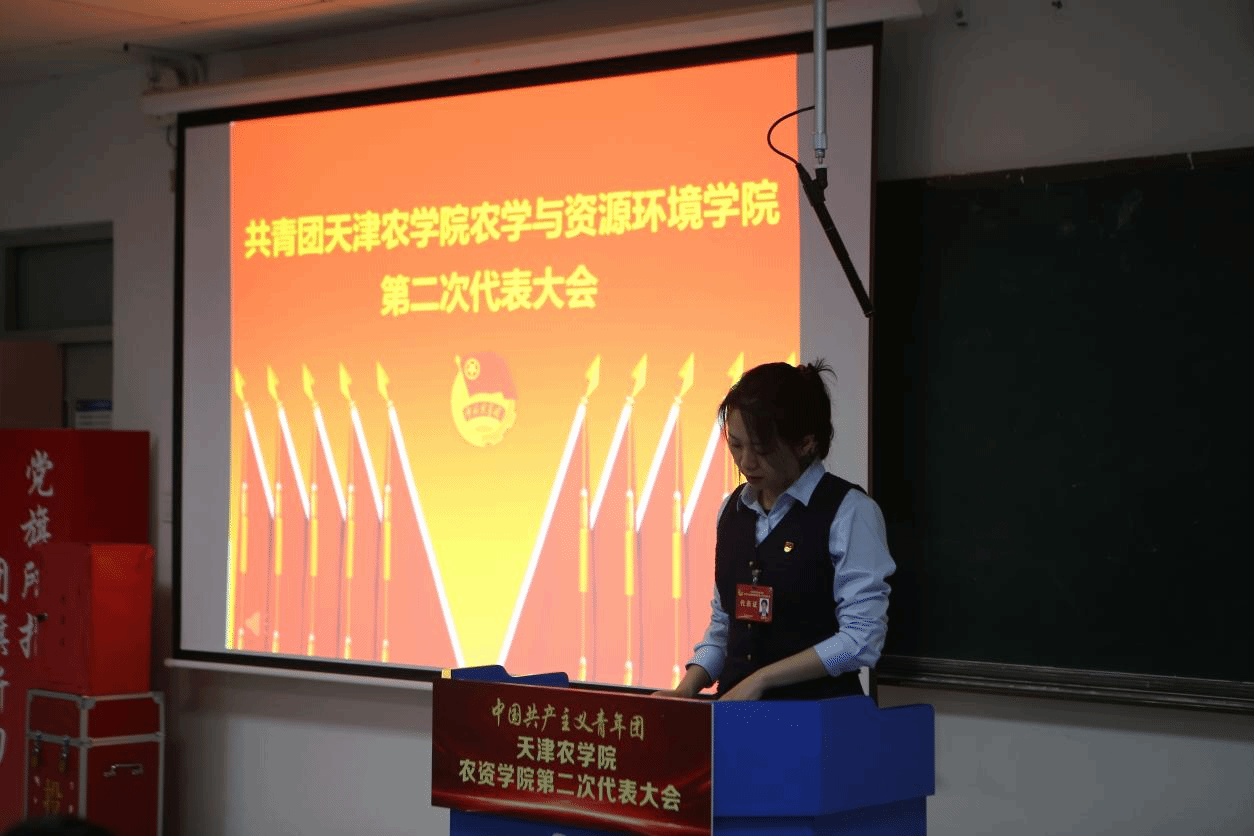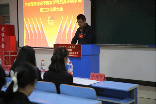4月16日,共青团天津农学院农学与资源环境学院第二次代表大会隆重召开。校团委副书记郑纪午、学院党委书记王善科,党委副书记、纪委书记孙红英、团委书记郭腾月、相关负责教师及全体团员代表齐聚一堂,共绘青春蓝图。