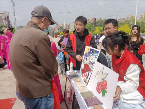 农学与资源环境学院种艺社团赴西青社会山南苑社区开展“多彩种子,粒粒在目”为主题的种艺画宣传展示活动。学生为社区居民讲解了种艺画的历史、相关知识、制作过程,宣传了乡村振兴、粮食安全、生态环境保护等政策。社区居民说,作品展现了我国取得伟大的科技成就,充满活力又让人动容,使大家看得见、摸得着、感受得到,既丰富了大家的精神文化生活,同时也是对社区居民热爱党、热爱祖国的一次生动教育。
