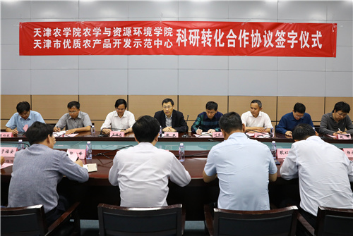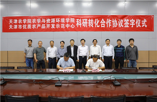天津市农业发展服务中心相关部门负责同志,我校科技处、农学与资源环境学院负责同志,以及双方技术团队的部分成员参加了签字仪式。