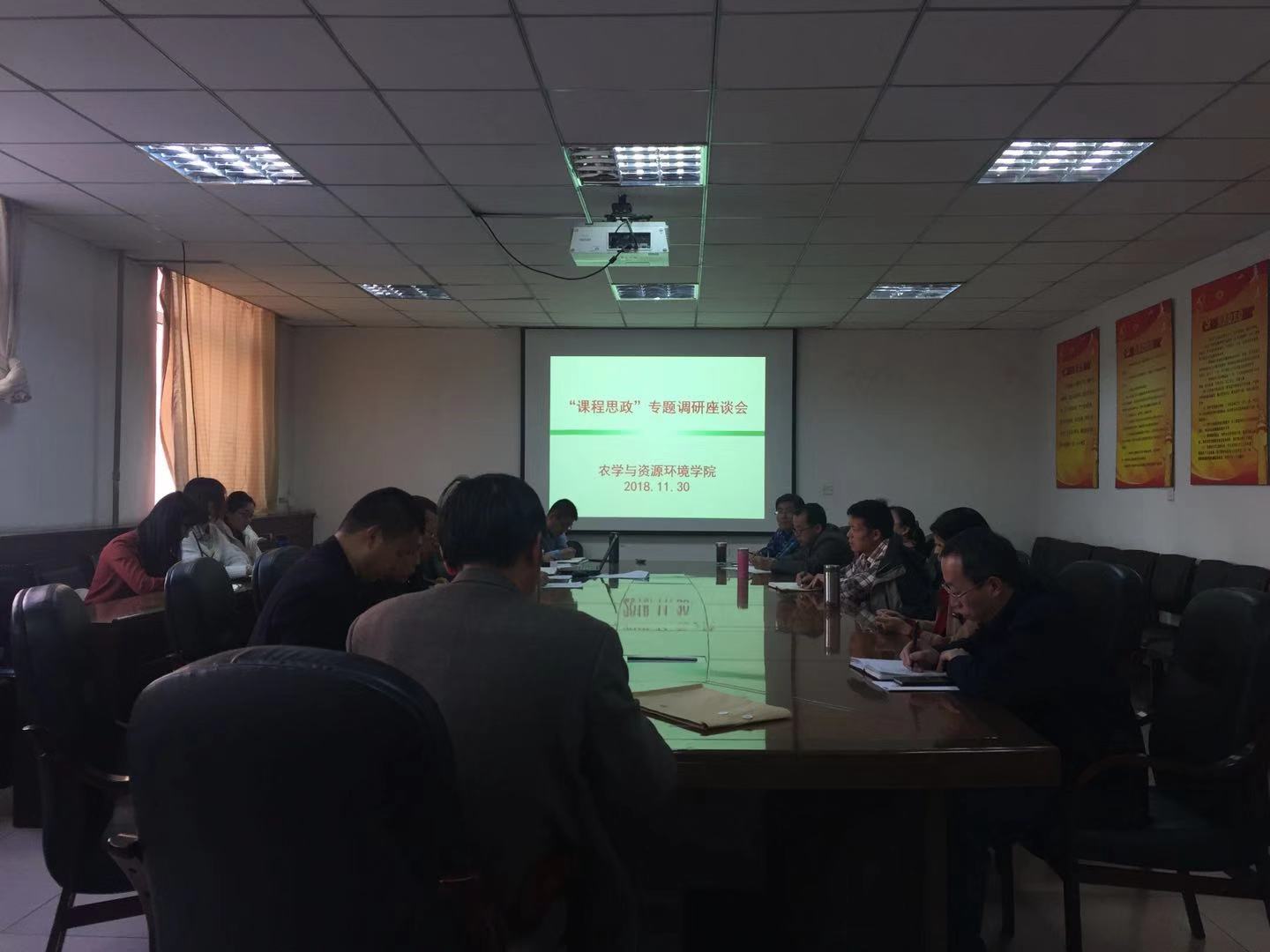 为深入贯彻落实全国高校思想政治工作会议精神,把思想政治工作贯穿教育教学全过程,20181130日下午,农学与资源环境学院分别召开了“课程思政”专题调研教师及学生座谈会。会议在实验楼210举行。学院领导、各系主任、党支部书记、教师及学生代表参加了调研座谈会,会议由学院党委书记、院长吴锡冬主持。