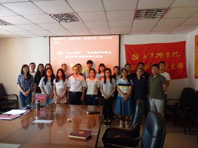 党支部书记卢树昌教授首先讲述了“四个意识”的提出背景,解读了四个意识的基本内涵,阐释了“四个意识”的相互关系。接着,讲述了李鸿忠书记在《天津日报》发表“做讲政治的知行合一者”和人民日报评论员增强‘四个意识维护党中央权威的文章,进一步论述维护和捍卫习近平总书记的核心地位的重要意义。最后,要求师生党员坚定理想信念、增强四个自信,做到思想认同、政治看齐、行动紧跟。
