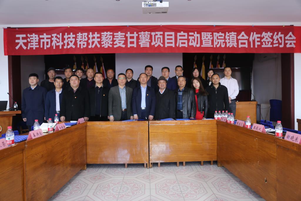 315日上午,天津市科技帮扶项目“藜麦产业技术集成及乡村振兴科技示范”、“惠丰前村甘薯产业发展及人居环境提升”启动暨天津农学院农学与资源环境学院和天津市静海区蔡公庄镇合作签约会在蔡公庄镇召开。市科技局社会发展与农村科技处处长单光瑞、调研员姜洪全、天津农学院科技处处长崔晶、静海区帮扶办负责人罗振荣、蔡公庄镇党委书记桑绍林、副书记吴宝山、天津农学院农学与环境资源学院副院长谢晓东出席会议。
