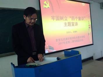 421日下午,我院在主教学楼112召开牢固树立四个意识主题宣讲会,学院院长吴锡冬为全体师生党员作了宣讲。